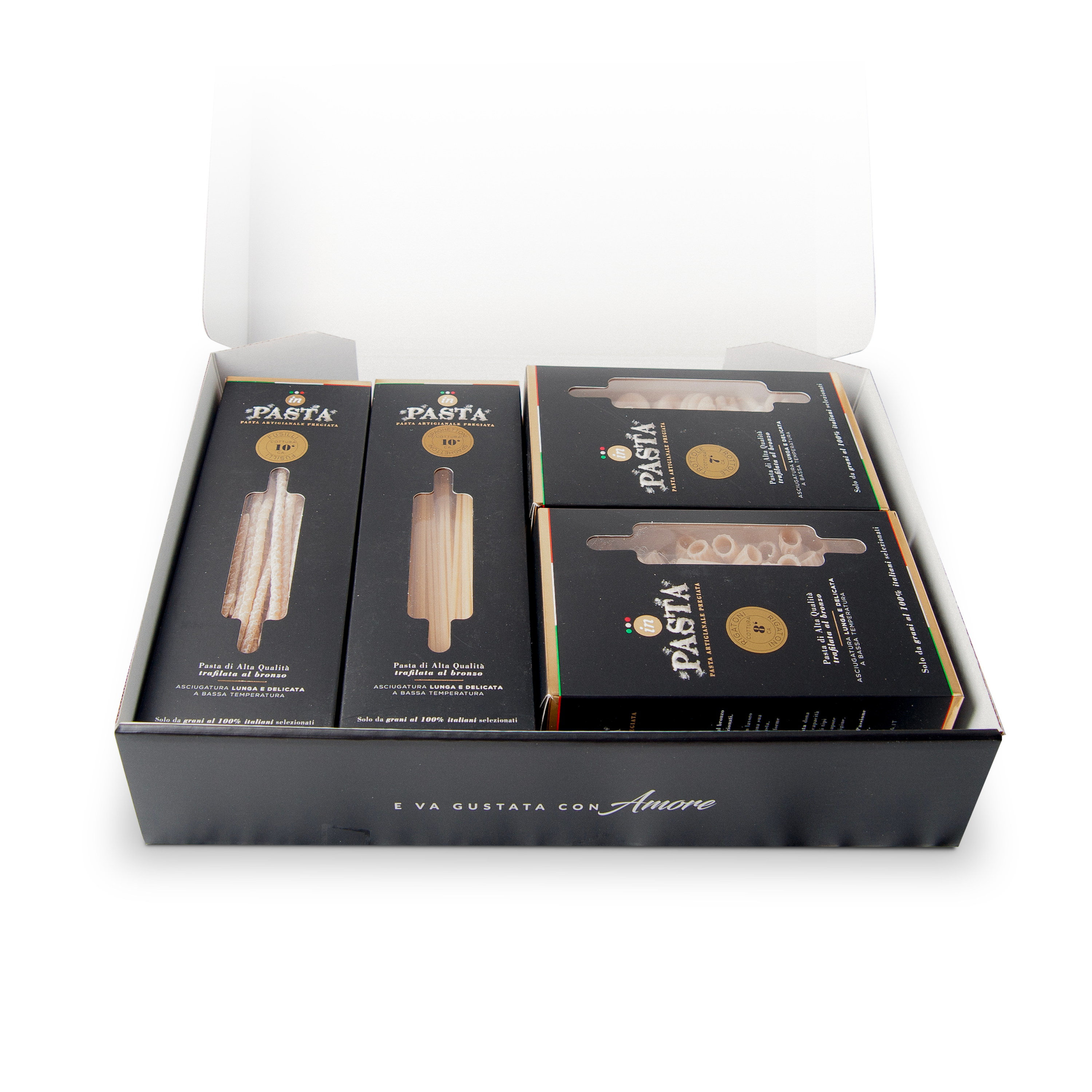 Il box “Sapori dal Sud”, una confezione regalo originale che, come suggerisce il nome, racchiude alcune delle gustose chicche provenienti dal nostro pastificio, la nostra pasta secca.